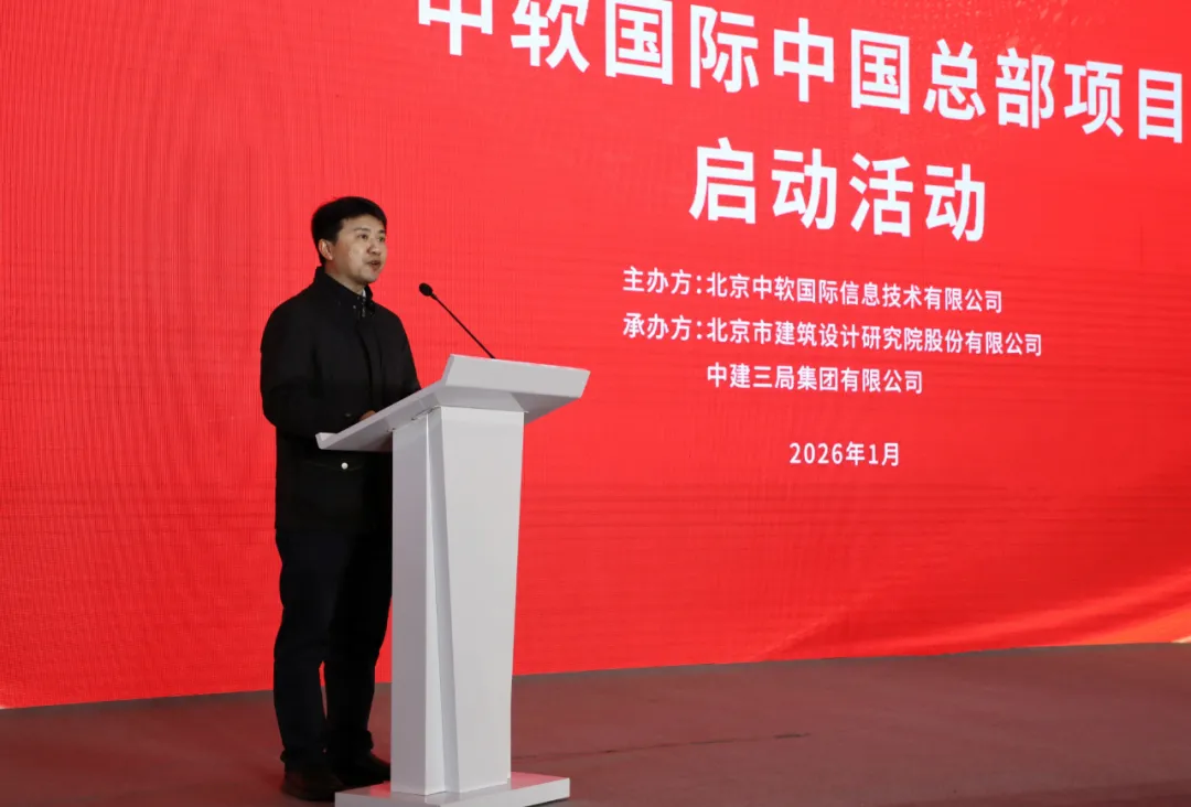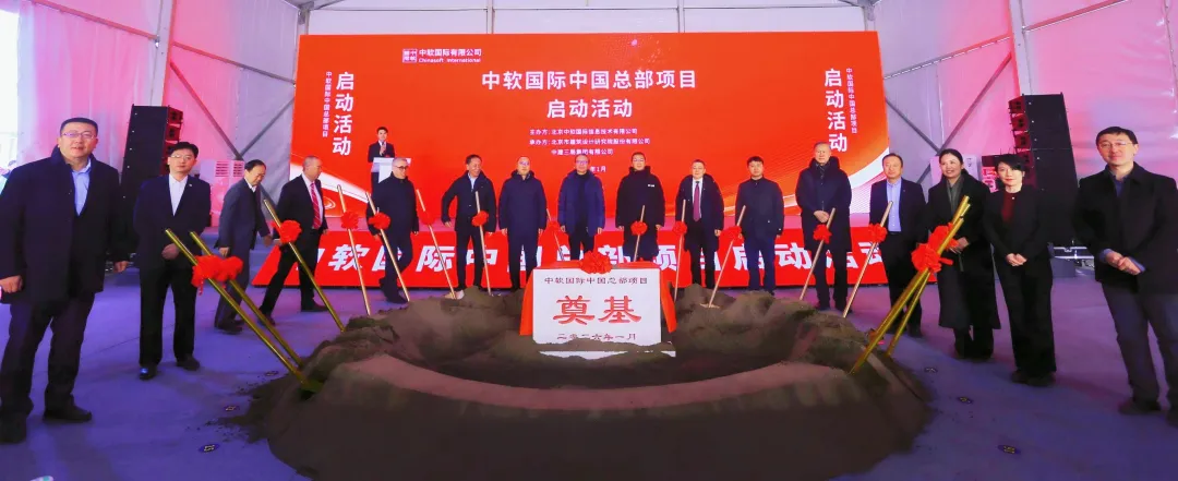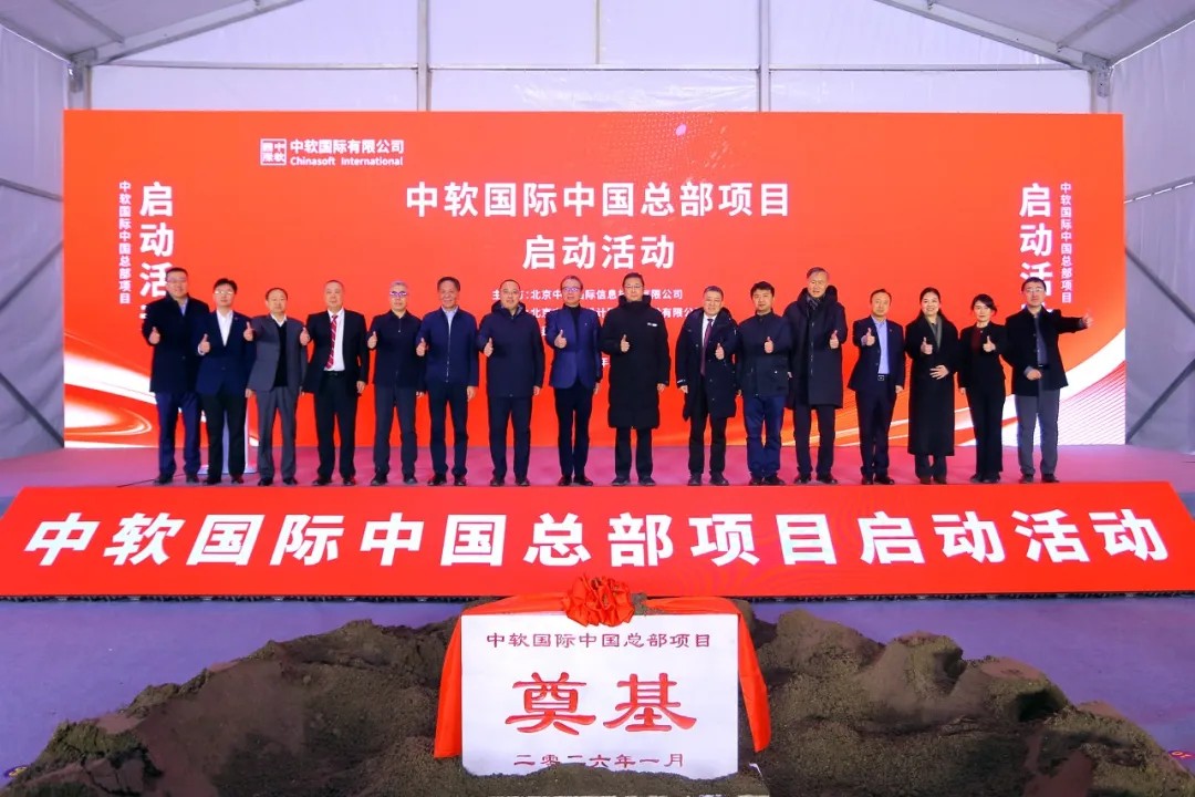 2026年1月8日上午,中软国际中国总部项目“未来之门”奠基仪式在北京昌平区隆重举行。昌平区委书记、未来科学城党工委书记甘靖中,昌平区副区长林宇,未来科学城管委会副主任、昌平区副区长赵仕伟,中软国际董事局主席兼CEO陈宇红,党委书记及执行董事唐振明,执行总裁彭江,执行总裁童强,北京市建筑设计研究院党委书记兼董事长徐全胜,中国建筑第三工程局副总经理李兵生等领导嘉宾共同出席,执锹培土,为项目奠基。